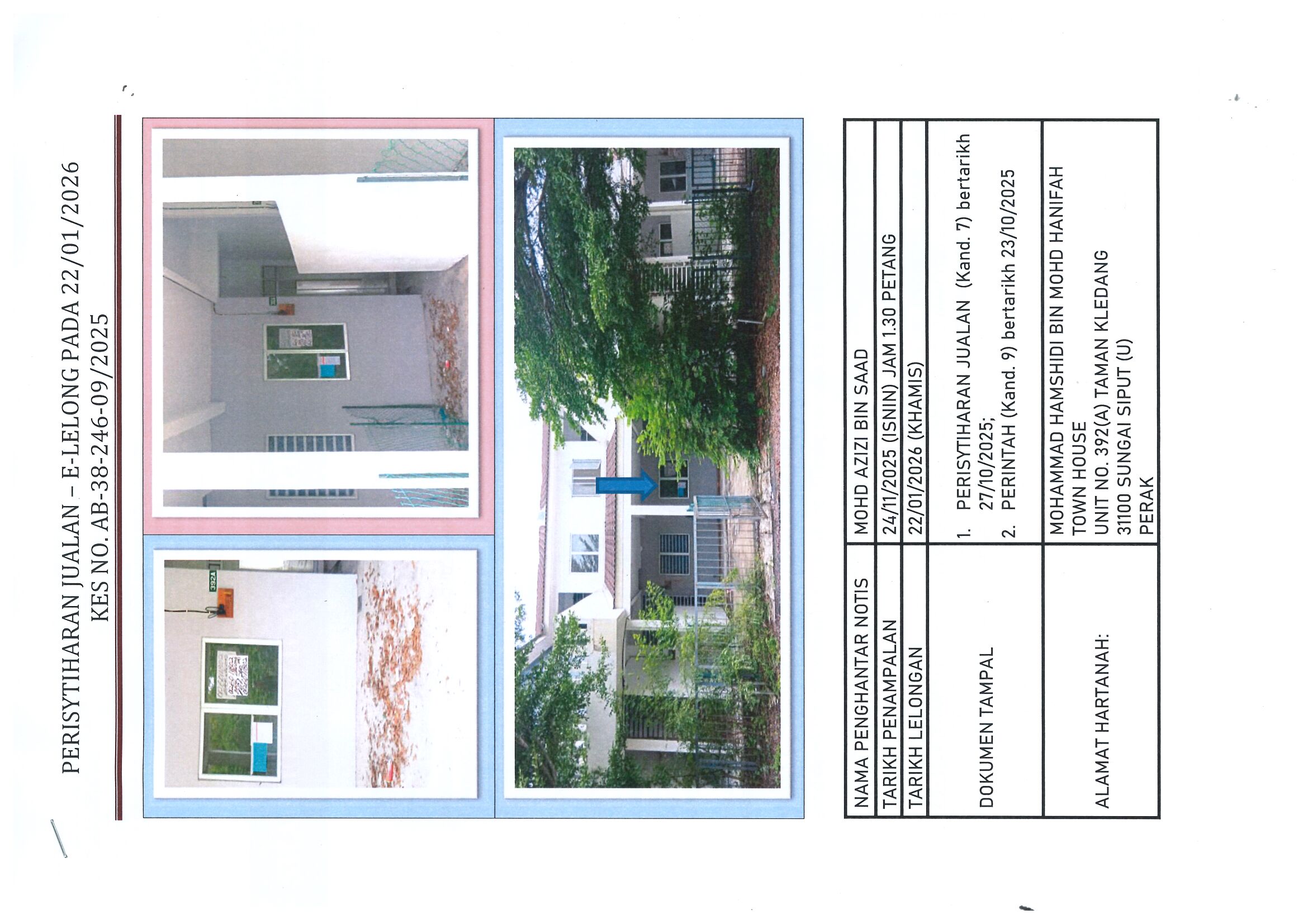 Sebelum Jualan lelong, bakal-bakal Pembeli dinasihatkan agar memeriksa dan mengenalpasti alamat Hartanah, mendapatkan pengesahan daripada Pihak Pemaju/Tuan Tanah dan/atau Pihak Berkuasa berkenaan samada ketetapan butiran Hartanah adalah betul, membuat carian hakmilik secara rasmi, mendapatkan salinan syarat-syarat Jualan daripada Pihak Pelelong dan mendapatkan khidmat nasihat daripada pihak peguam.