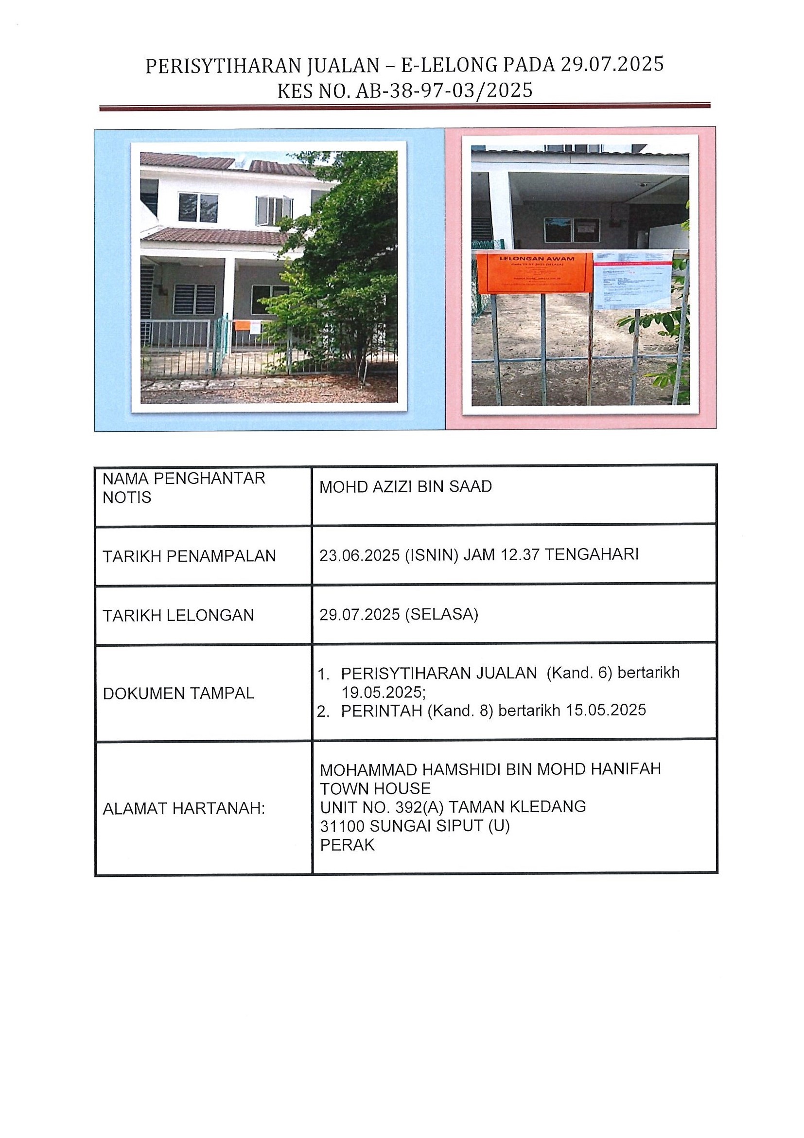 Sila berhubung terus dengan Pelelong atau Peguam seperti yang tertera pada paparan hartanah lelongan.